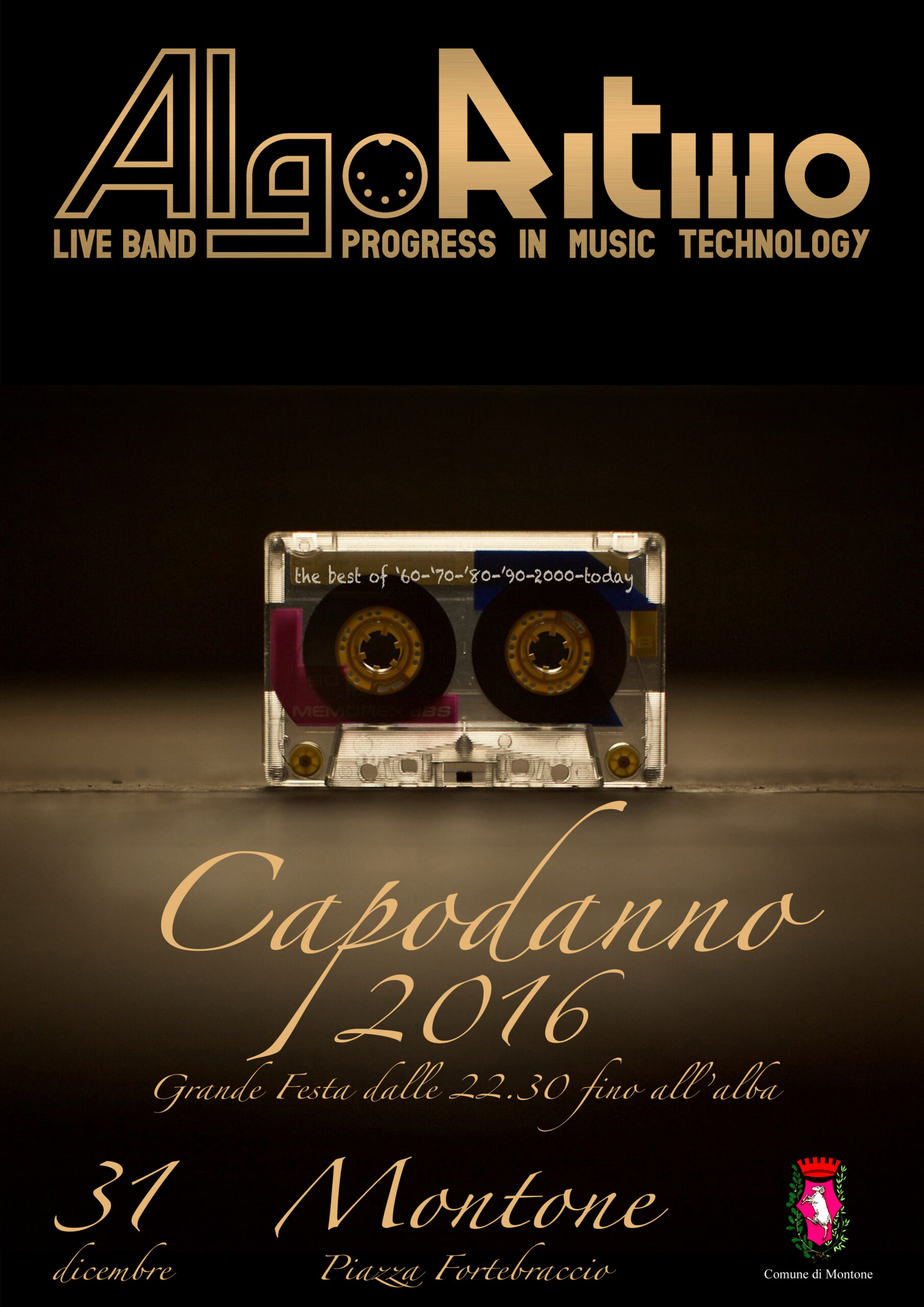 GIOVEDÌ 31 DICEMBRE Dalle Ore 22.30 all’alba PIAZZA FORTEBRACCIO Aspetta con noi l’arrivo del 2016! Grande festa e musica dal vivo con la band “Gli Algoritmo” Ore 24.00 PIAZZA FORTEBRACCIO Spettacolo pirotecnico a cura di Comune di Montone, Ass. culturale Resid