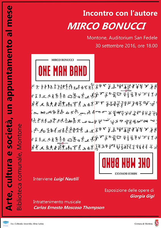 La Biblioteca Comunale di Montone nell’ambito degli incontri di “Arte, cultura e società, un appuntamento al mese” presenta l’autore Mirco Bonucci in “ONE MAN BAND” Venerdì 30 settembre 2016, alle ore 18,00 nell’Auditorium S