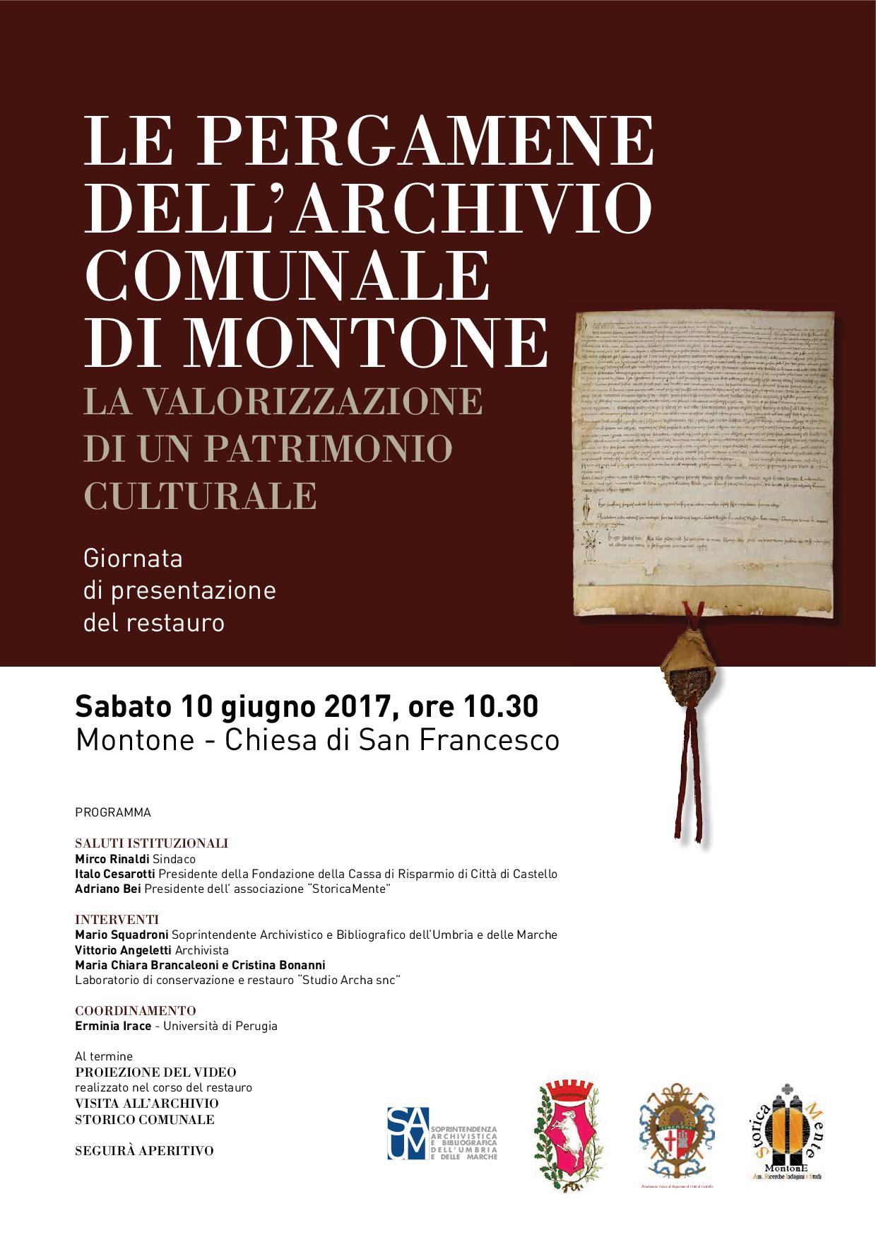 Presentazione del Restauro delle Pergamene dell’ Archivio Comunale di Montone – 10 giugno 2017