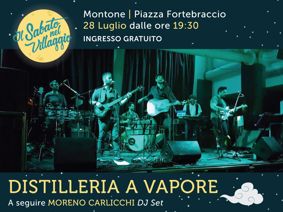 “Il Sabato nel Villaggio” presenta il 28 luglio 2018 alle ore 19,30 in Piazza Fortebraccio il gruppo: Distilleria a Vapore Che genere di musica propongono? Sin dagli esordi, dal 2011 nell’ esattezza, presentano brani di De Andrè, Guccini, Vinicio Capossel