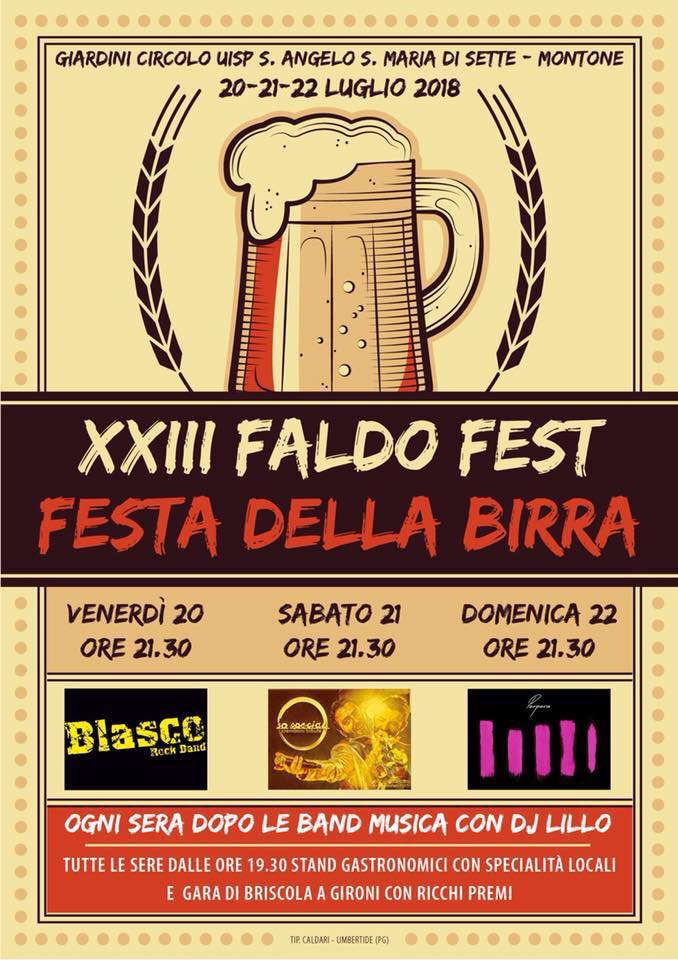 XIII FALDO FEST “Festa della Birra” 20 / 21 / 22 Luglio 2018, ore 21.30 Tutte le sere dalle ore 19.30 stand gastronomici con specialità locali e gara di Briscola a gironi con ricchi premi!