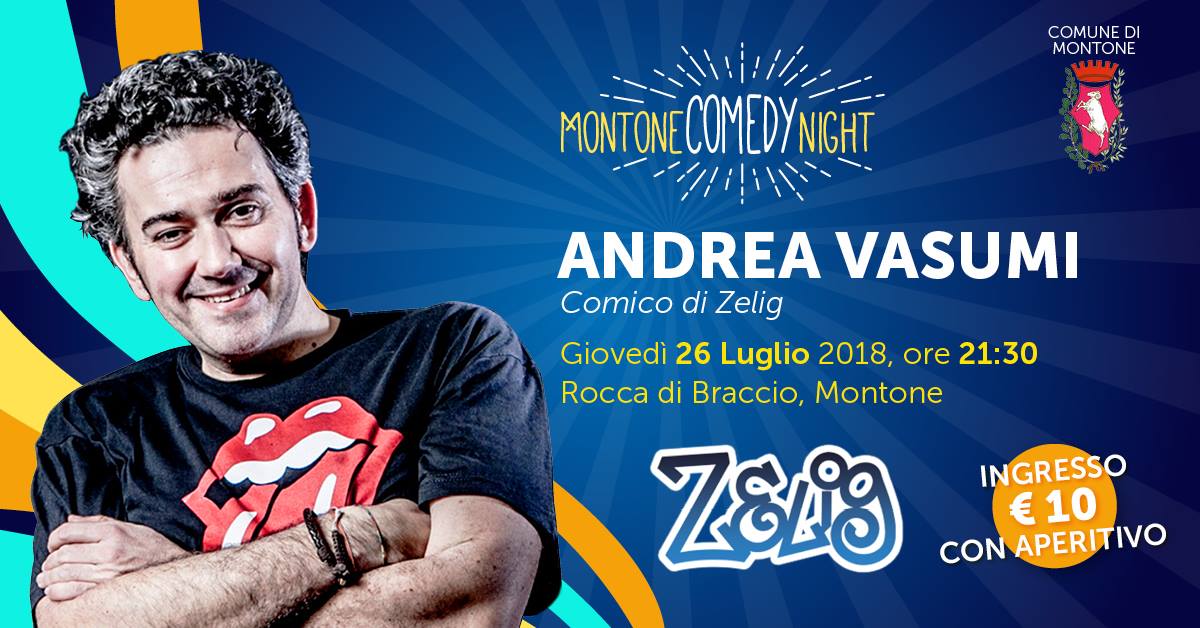Andrea Vasumi, comico di Zelig, il 26 luglio 2018, ore 21.30 Rocca di Braccio a Montone. Chi è Andrea Vasumi? Come è nato il Vasumi comico? “E’ successo tutto a scuola, ed essendo romagnolo non potevano mancare le vacanze nei campeggi. Qui partivano delle s
