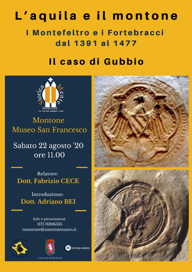 L’Aquila e il Montone: due simboli, due emblemi che esprimono il confronto tra due famiglie, storie di condottieri e capitani di ventura tra il 1300 e il 1500. Uomini che hanno avuto un ruolo importante nello scacchiere politico italiano. A Montone il 22 agosto