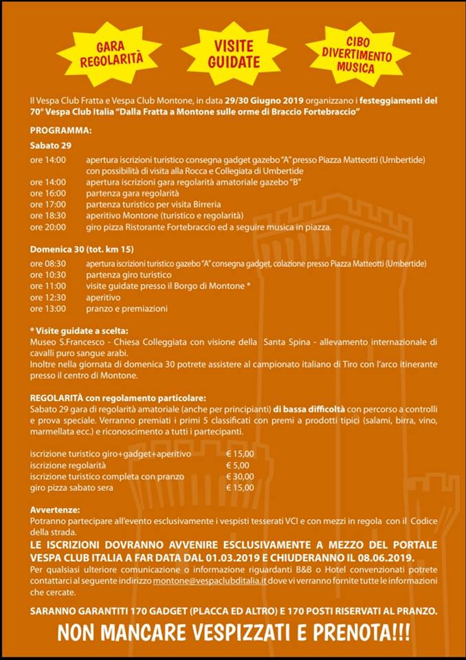 70 anni del Vespa Club a Montone – 29/30 giugno 2019