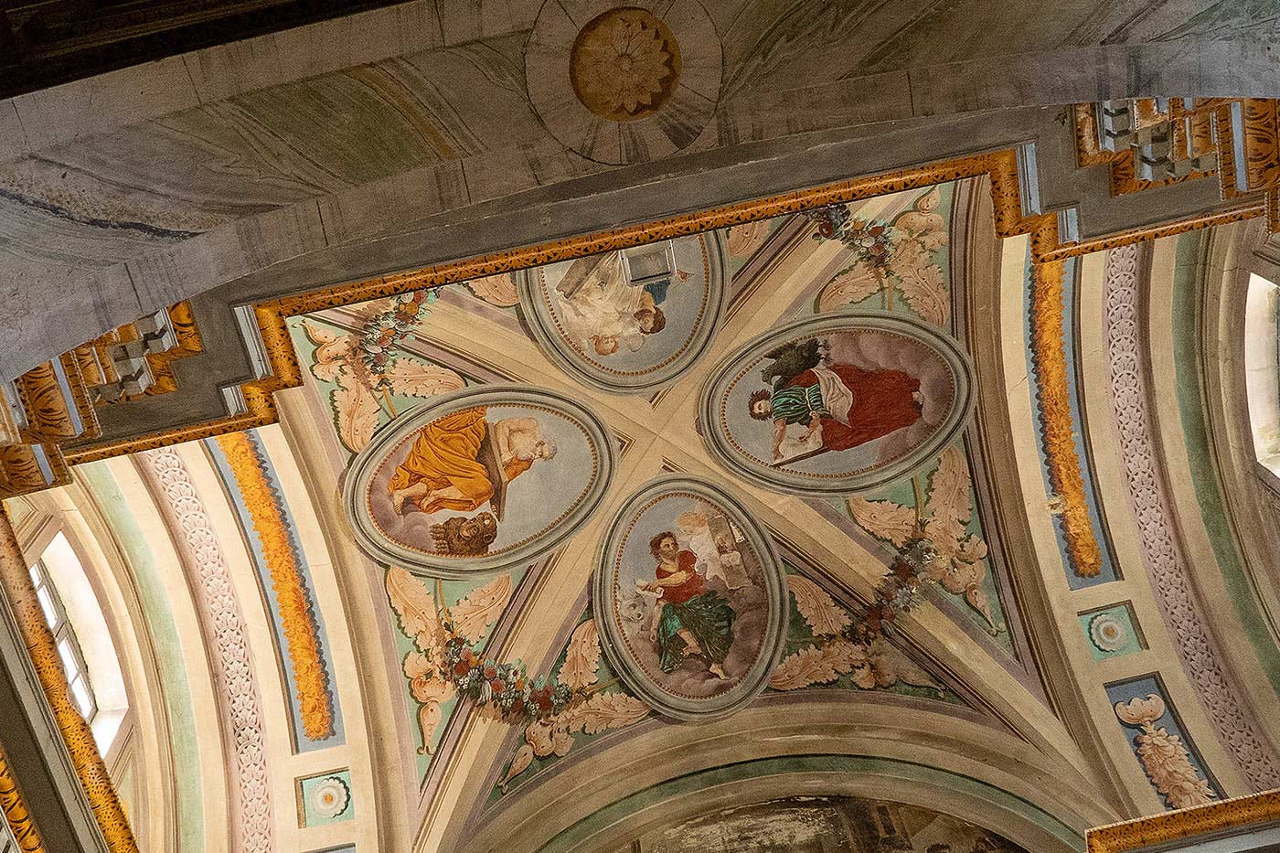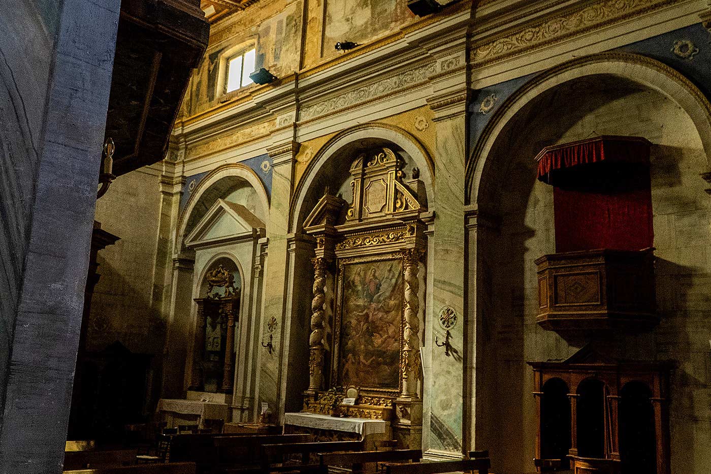 La ricca e organica ornamentazione della chiesa, anche se eseguita in tempi lunghi, tra il 1657 e il 1750, derivano molto probabilmente da un progetto unitario, come testimonia tutta la decorazione pittorica della navata. L’insieme costituisce un originale scrigno d’arte di questo periodo, che si può ancora godere nel suo impianto pressoché immutato.