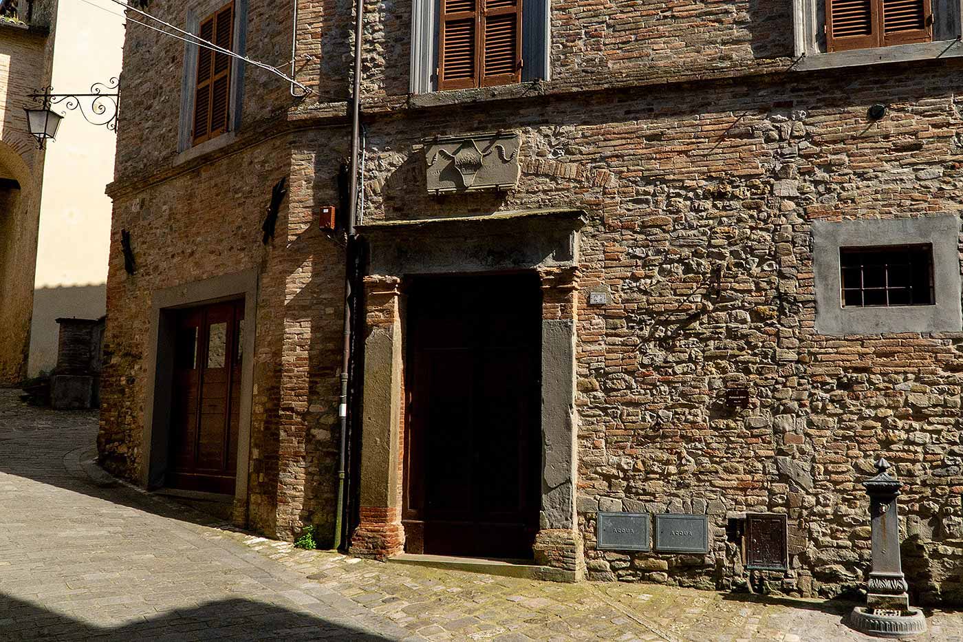 Percorrendo via Roma che ripida e tortuosa sale al Monte, si incontra, nei pressi della sommità, il grande palazzo degli Olivi. La famiglia degli Olivi fu fin dagli inizi del XIII secolo antagonista dei Fortebracci. Gli uni legati a Città di Castello e di fazione ghibellina, lai secondi legati a Perugia e di fazione guelfa. Nel 1280 Faziolo degli Ulivi, con la complicità di Tano degli Ubaldini ordì una congiura nei confronti dei Fortebracci. In questa occasione una parte dei Fortebracci furono assassinati, alcuni ancora in fasce. Vincenzo Giobbi Fortebracci, che nel secolo XVII si pubblicò una storia della propria famiglia, ci informa che nei pressi della rocca erano situati i palazzi delle famiglie più potenti e quello dei Fortebracci era posto a poca distanza da quello degli Olivi separati soltanto dalla chiesa di Santa Maria. La rivalità tra le due famiglie ebbe fine nel 1350 quando una Fortebracci andò in sposa ad un Olivi.