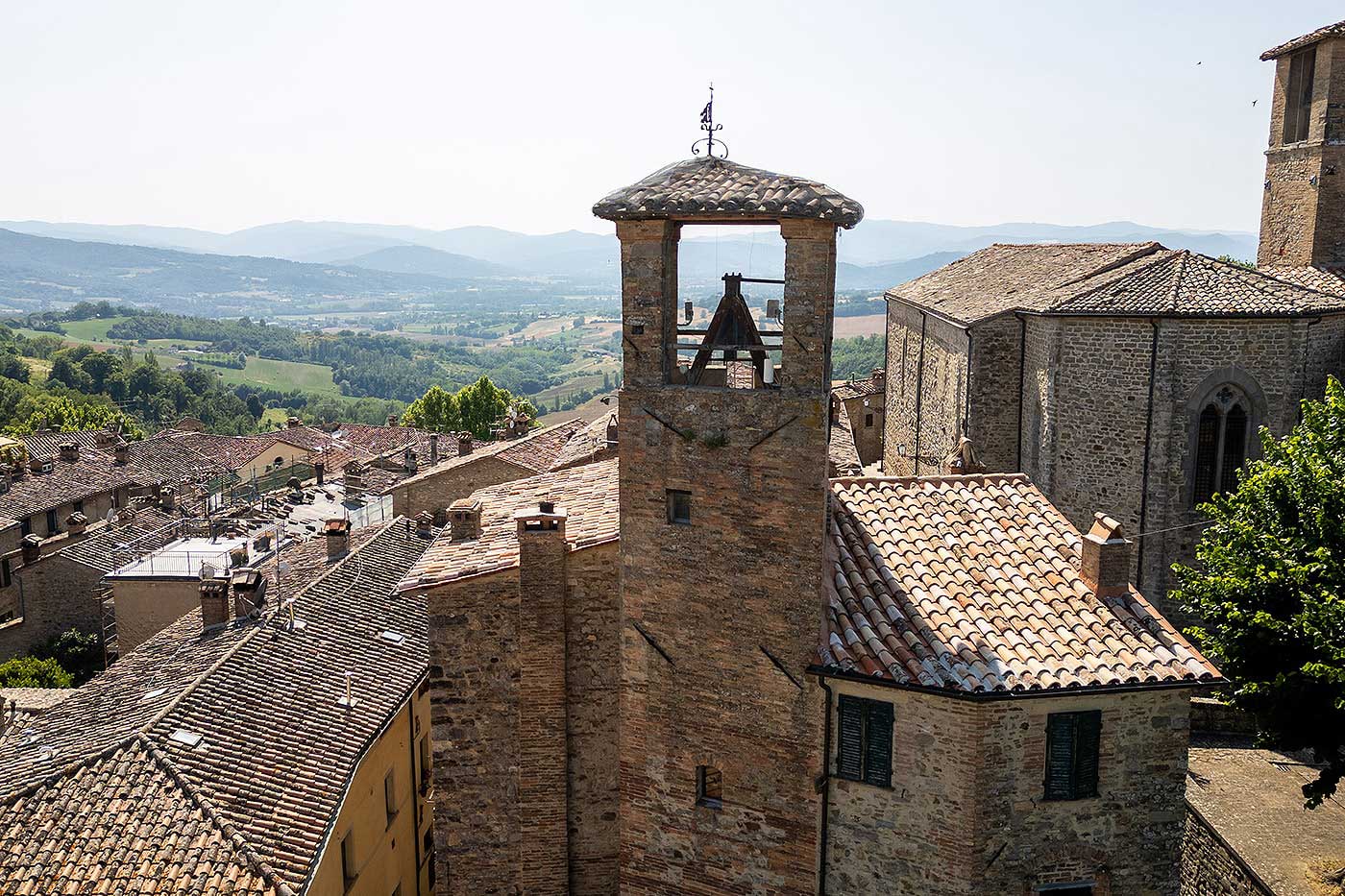 coscienza del proprio ruolo. La grande torre, alta circa venticinque metri, è appoggiata alle scale che digradano da