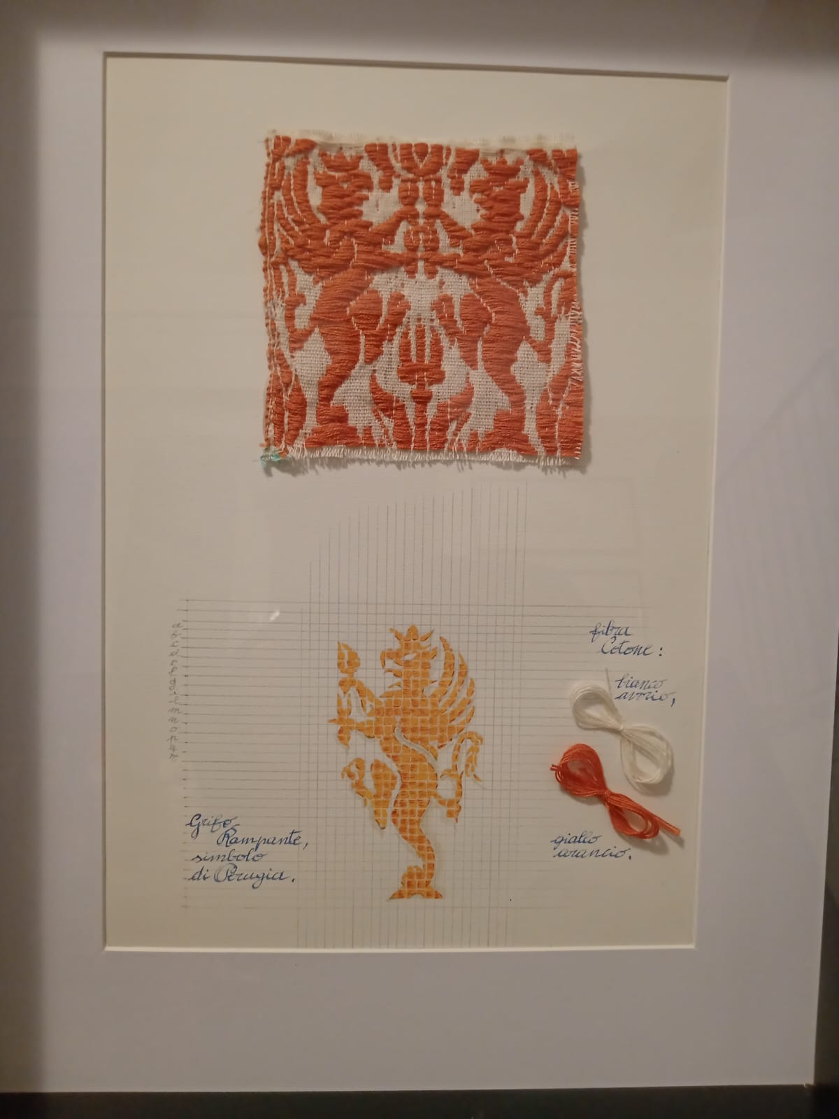 Al termine il presidente del Coro Polifonico Felciniano, Claudio Frezzini, ha donato un quadro di una pagina del “Campionario dei Tessuti Perugini” realizzato dal laboratorio Intrecciamo i Fili di Ponte Felcino.