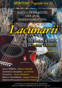 Appuntamento alla Rocca di Braccio, ore 21,215 tra Musica & Poesia di Andrea Chianelli e arrangiamenti di Luca Parisi, in un luogo particolarmente suggestivo, pensate alle stanze della Rocca di Braccio con i soffitti a cassettoni completamente decorati oppure ad una volta affrescata, ricca di ornamenti.