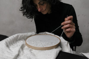 Vive e lavora a Sansepolcro. Dal 2007 inizia a usare il ricamo come elemento fondamentale della sua ricerca, diventando così il linguaggio in cui sente meglio rappresentata la propria poetica. Una tecnica densa di significati simbolici sulle origini del femminile e intensamente collegata a una ricerca identitaria, che affonda le proprie radici
