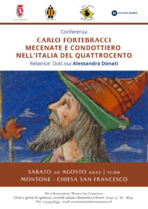 Sabato 20 Agosto 2022 alle ore 11.00 Conferenza a Montone, nella Chiesa di San Francesco, su : ” Carlo Fortebracci, mecenate e condottiero nell’ Italia del Quattrocento” Relatrice Dott.ssa Alessandra Donati