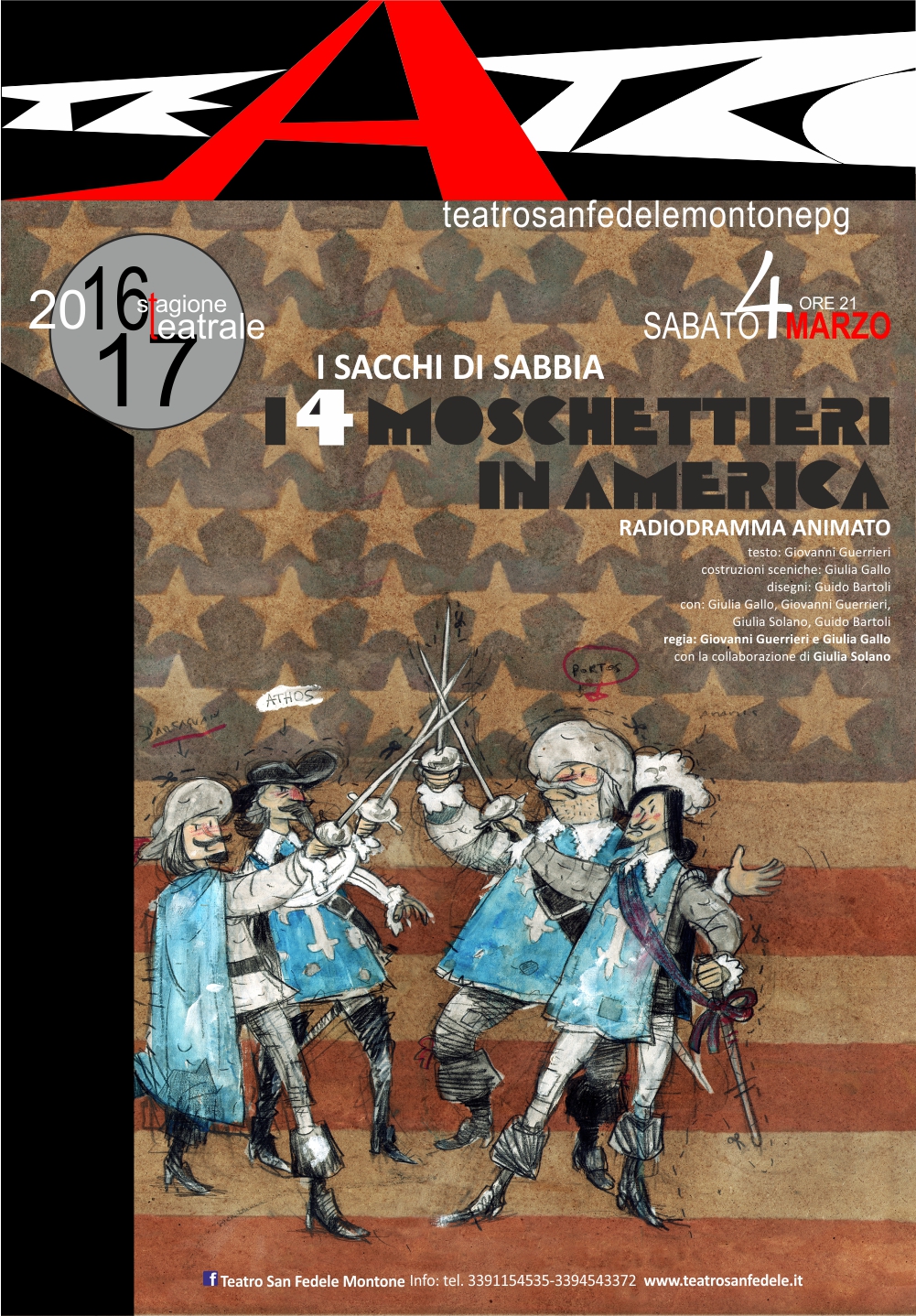 Ottant’anni dopo, I Sacchi di Sabbia hanno dato un sequel a I 4 moschettieri: dapprima con un radiodramma – realizzato per Radio 3 all’interno del progetto Radio Days di Santarcangelo 14 – ed ora con questo spettacolo teatrale che ripropone, in un’inedita sperimentazione visiva, le atmosfere e i personaggi del radiodramma.