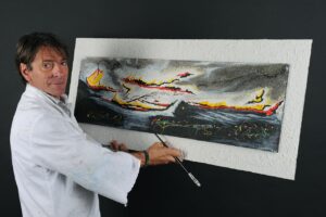 … Ecco che allora, per autonomia stilistica ed originalità si distingue nel panorama artistico italiano, la narrazione figurativa del maestro Riccardo Fiorucci che nella creatività e nell’elemento mobile e fantastico supera i dettami accademici, tra formulazioni astratte con inserimenti materici di una nuova spazialità, un logos ideale di finissime sensazioni e tracce del vissuto.