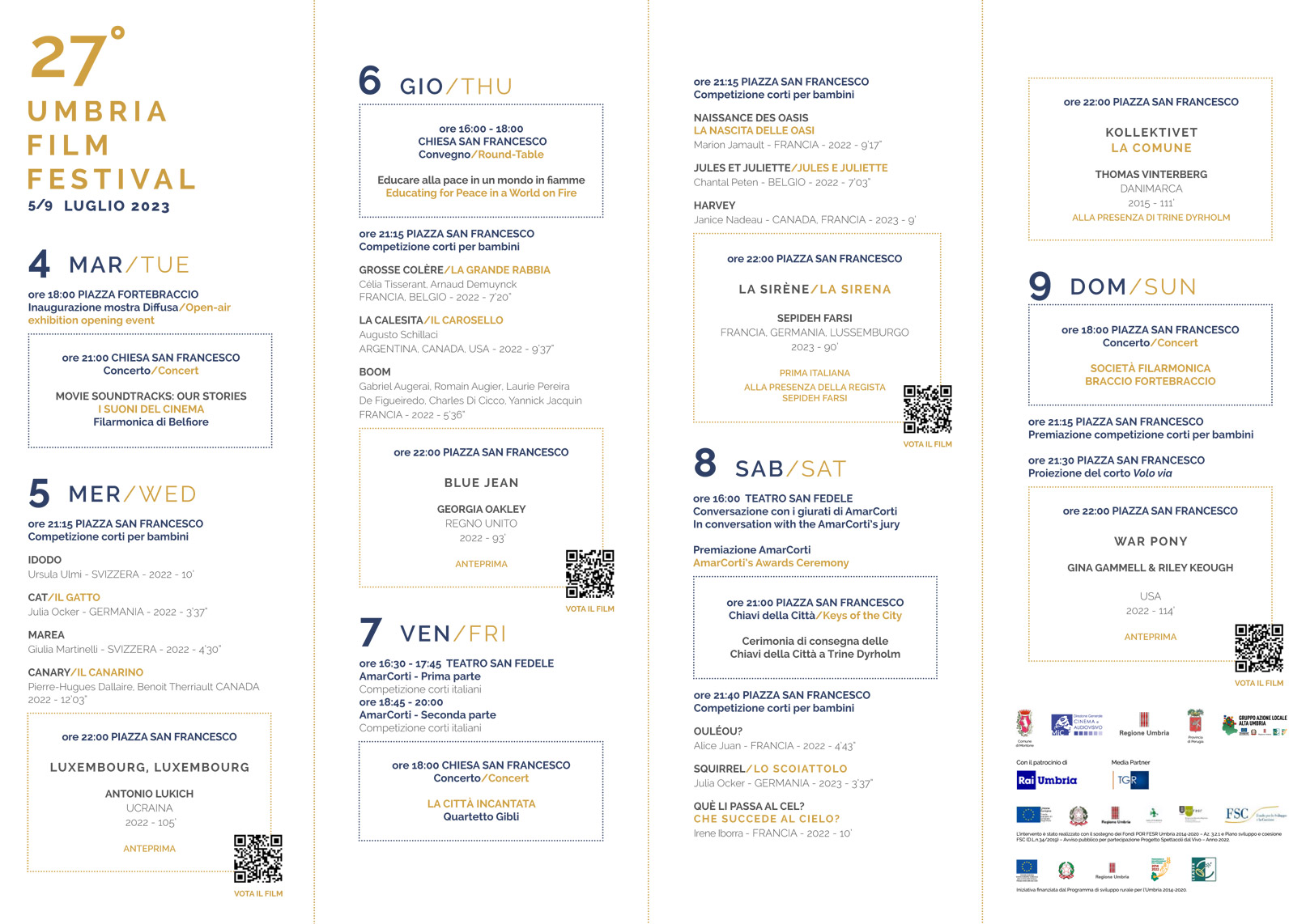 Appuntamento unico e straordinario con l’Umbria Film Festival 2023 che torna a Montone dal 5 al 9 luglio con un ricco programma. Ci saranno prime e anteprime italiane di film internazionali, provenienti dai Festival cinematografici più prestigiosi come Berlino, Cannes, Venezia. Tutti i film saranno proiettati in lingua originale, con sottotitoli in inglese e italiano.